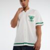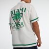 Chemise à manches courtes blanche à rayures vertes, avec un motif vintage “Miami Casa” et un palmier. Cette pièce unique, à la fois décontractée et tendance, est parfaite pour créer un look d’été ou un style Y2K. Sa coupe ample la rend très confortable et facile à porter.